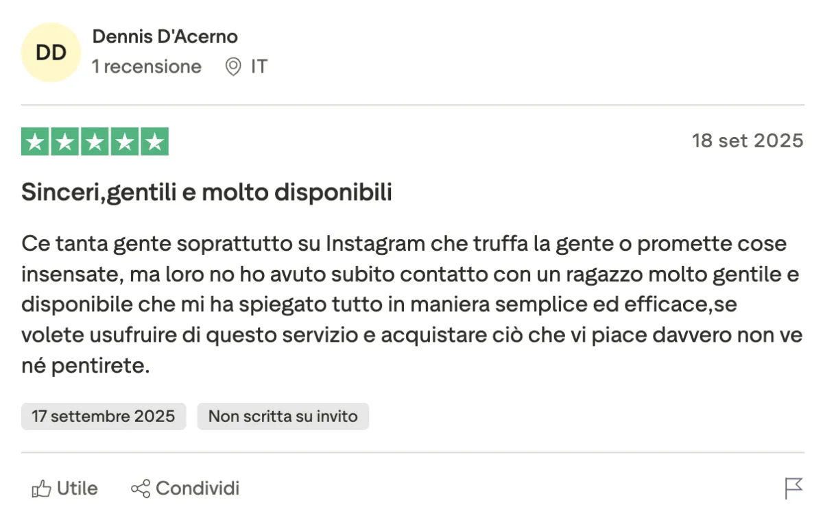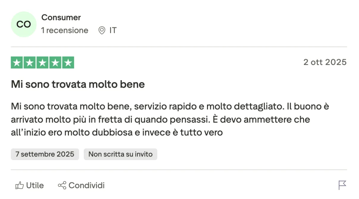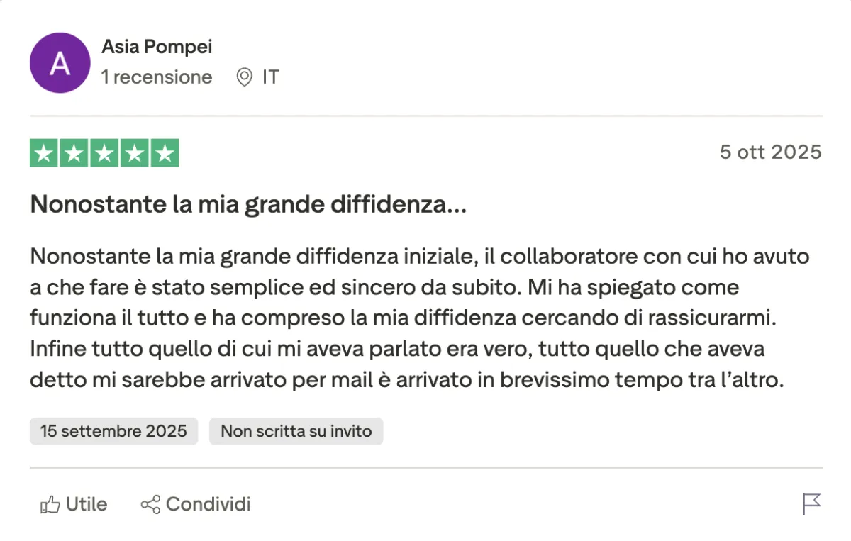 Siamo trasparenti, disponibili e ci mettiamo la faccia: oltre 300 recensioni verificate raccontano la nostra storia di affidabilità e soddisfazione.